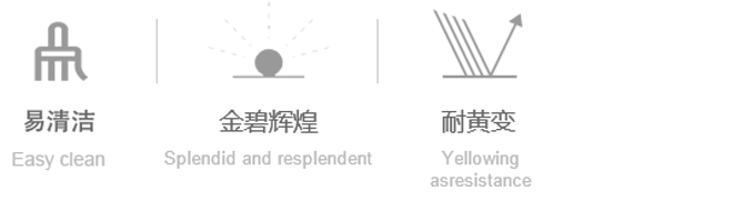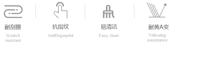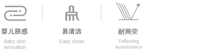 表面结合了多层涂料与专有烤瓷科技,具有新一代固化率达99.9%的瓷面特色。产品呈现婴儿肤感 / 耐污易清洁 / 耐黄变等功能特性。